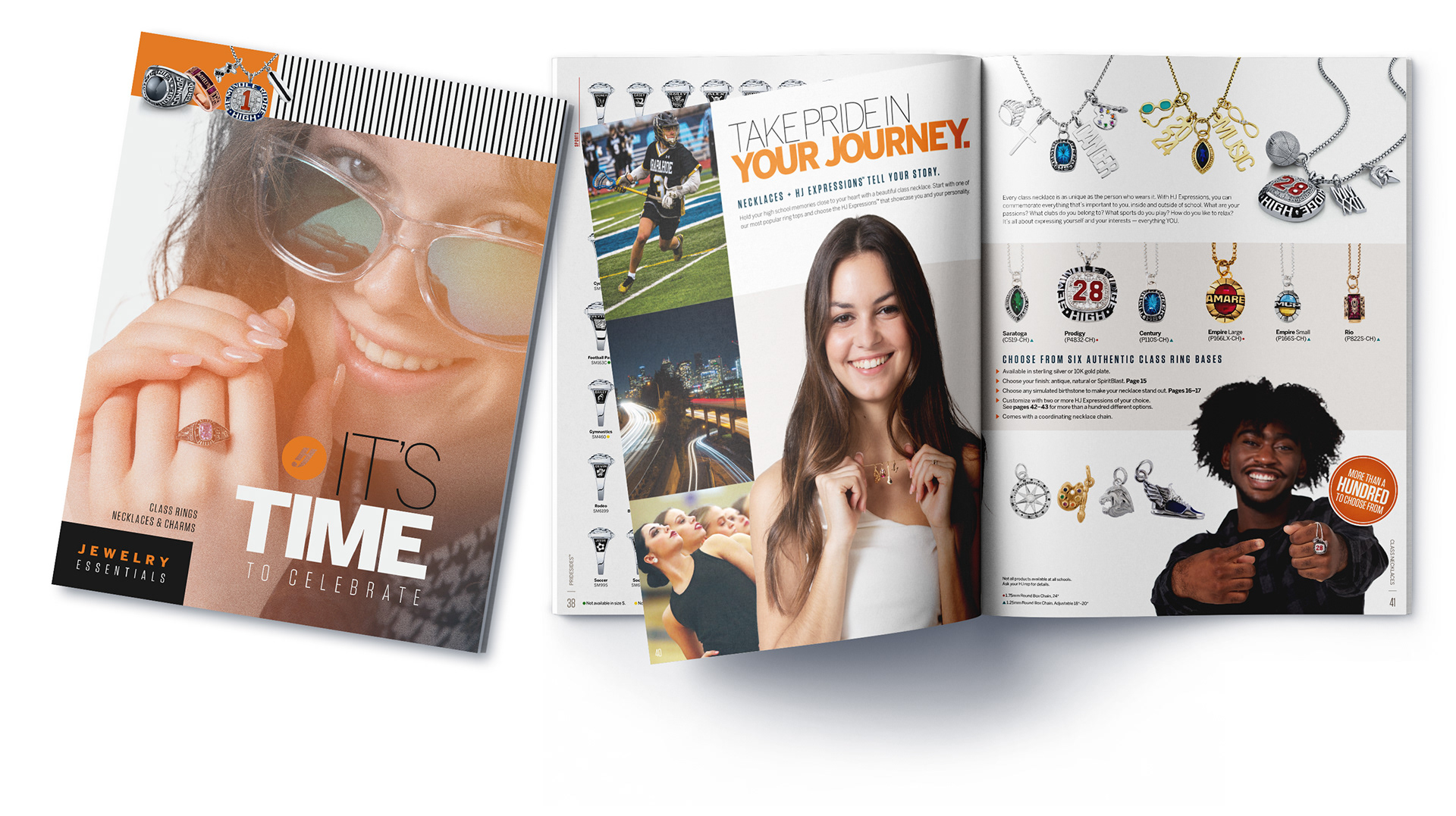 The Herff Jones scholastic catalogs are an annual project, and in 2022 I ran it for the fifth consecutive year. We again produced 6 variants with different mixes of product. Some sales partners have offerings that vary by school or district, and prefer to use catalogs that exclude certain items to avoid customer confusion. In practice, this meant developing the Senior All-Inclusive Catalog first (since it contained everything), getting most everything approved and finalized, and then splitting its content out into other catalogs that contained various product lines.